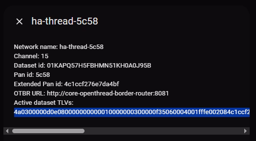 name: "Thread PAN ID"Note: Due to WEB formatting issues we could not use the full TLV in the example, YAML requires specific indentation and the TLV code shown here was modified to keep the correct indentation.